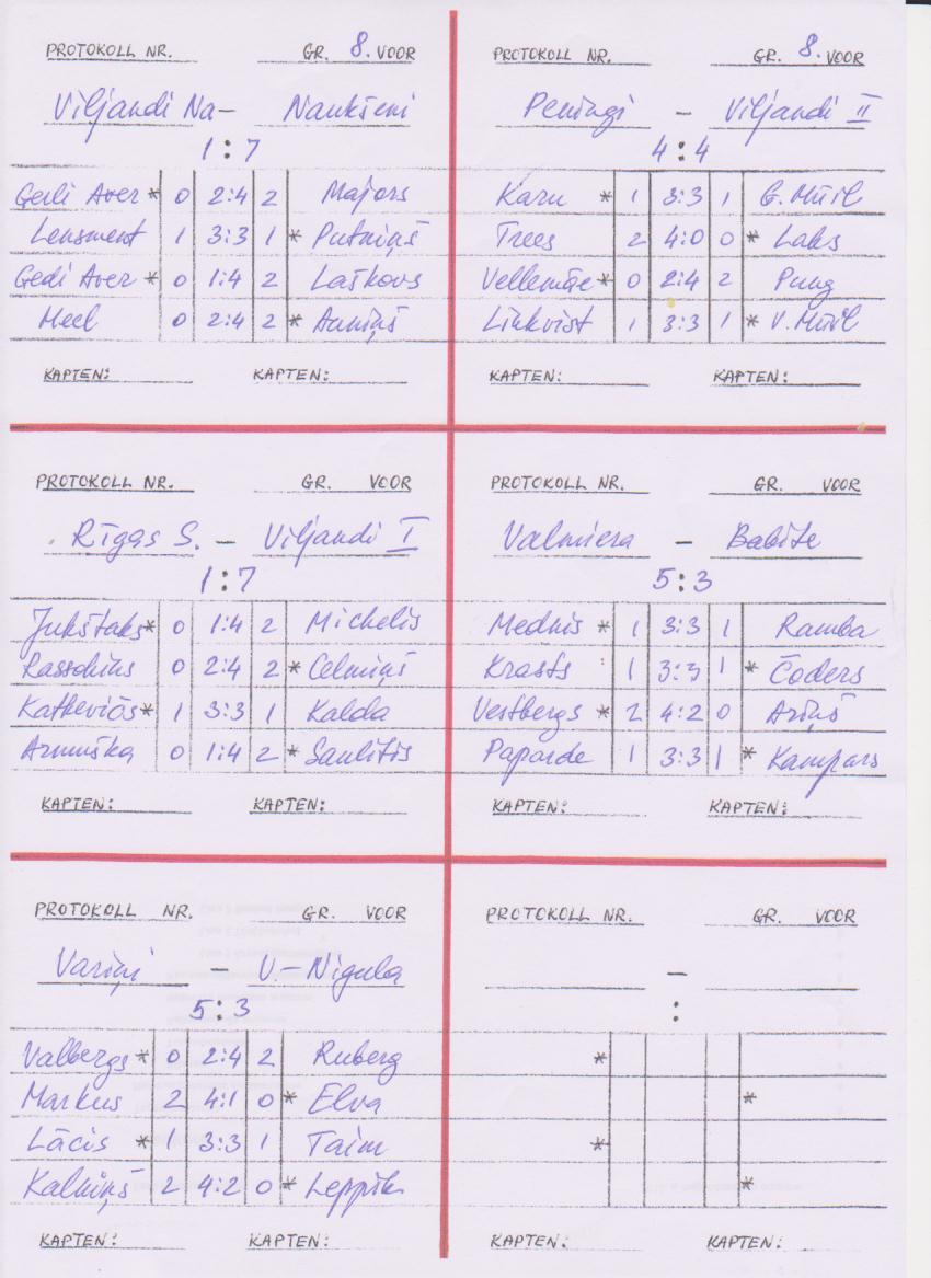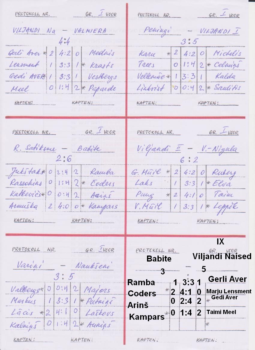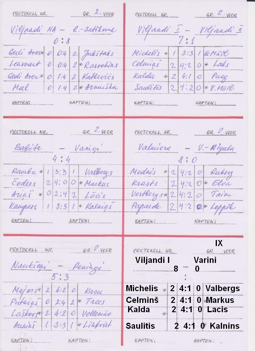 Võitis Naukseni NK, järgnesid Valmiera NK ja Viljandi-Jurmala ühisvõistkond. Eesti võistkondadest jagasid 7.-8. kohta Viljandi naised ja Peningi, järgnesid Viljandi II ja Viru-Nigula. Voorude protokollid: I voor , II voor , III voor , IV voor , V voor , VI voor , VII voor ja VIII voor . 9. voor on esimeste lehtede peal üks mänghaaval