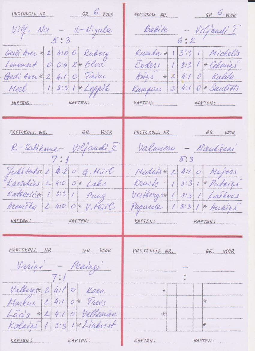Võistkonnad ning mängijate tulemused . Üldkokkuvõttes võitis Tirts, järgnesid Kehra I ja Ring I.