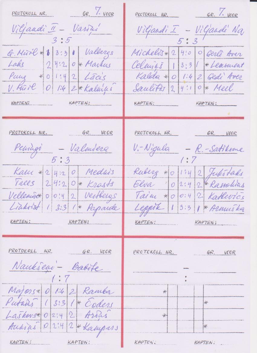 Raasiku XII karikavõistlus (meesüksikmäng)(läti laual) Raasiku Rahvamajas. Võitis Gerli Aver, tulemused .