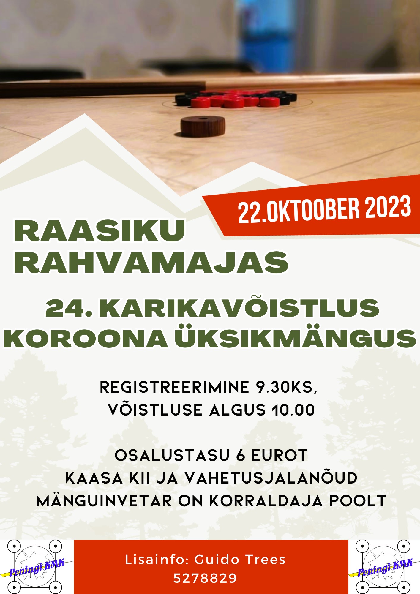 | P 22.10 35 Raasiku 24. karikavõistlus koroona üksikmängus, Raasiku Rahvamajas. juhend, Raasiku Cup , võistluse võitjad Guido Trees, EKML Võistluse üksikmängu protokoll. Raasiku Cup 2023 esikolmik , II korda võitis Marek Lepist .